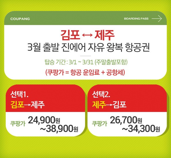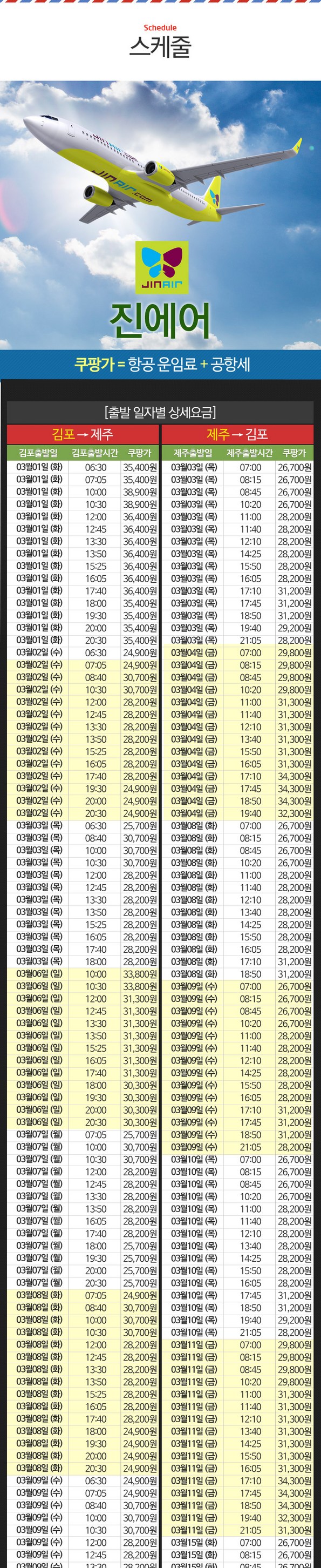 ♧ 3월 [김포출발] 진에어 항공권(왕복 구매시 이용)_ 스케줄 선택 가능♧
